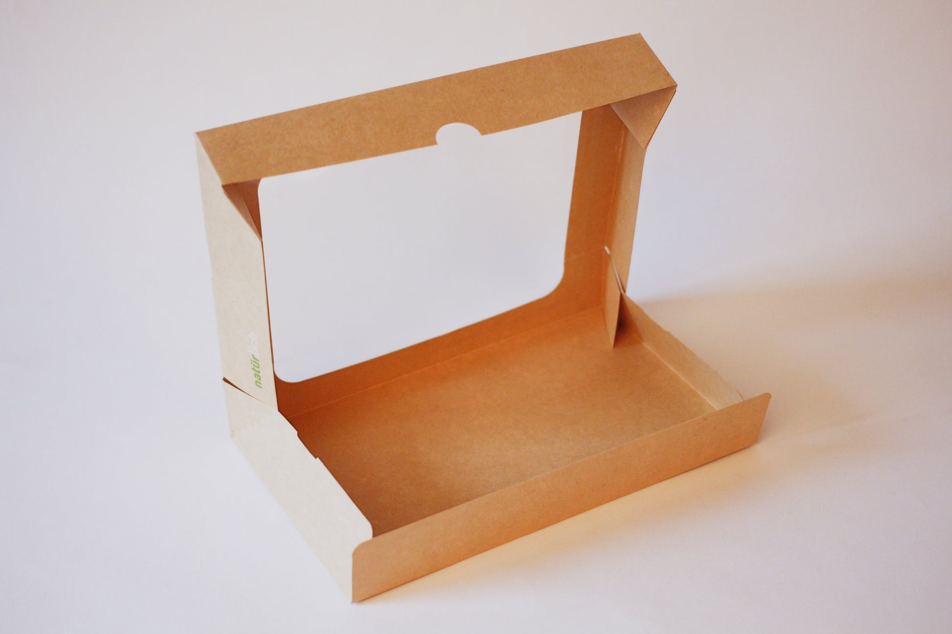 Hartpapier mit Sichtfenster – braun, fettabweisend, stabil & recyclebar.